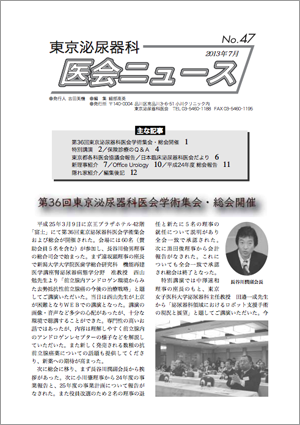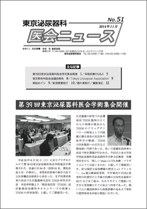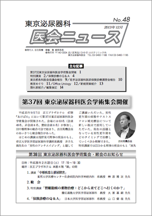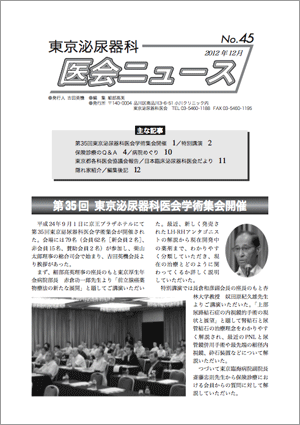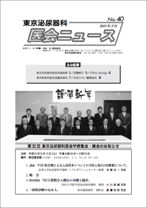 第35回東京泌尿器科医会学術集会開催 /特別講演 /保険診療のQ&A/病院めぐり/東京都各科医会協議会報告/日本臨床泌尿器科医会だより /隠れ家紹介/編集後記