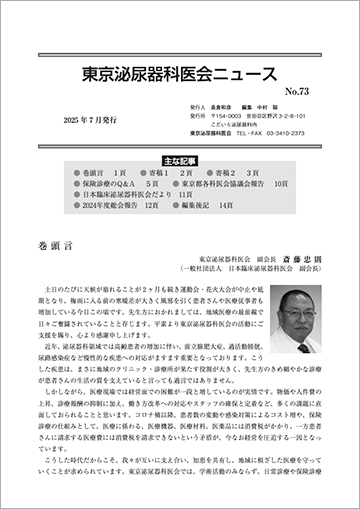 東京泌尿器科医会役員挨拶/図書紹介/Office Urology/東京都各科医会協議会報告/お知らせ/編集後記